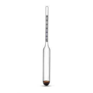 Диапазон измерения плотности жидкости составляет от 700 до 1840 кг/м3. Показатели считывают по нижнему краю мениска.